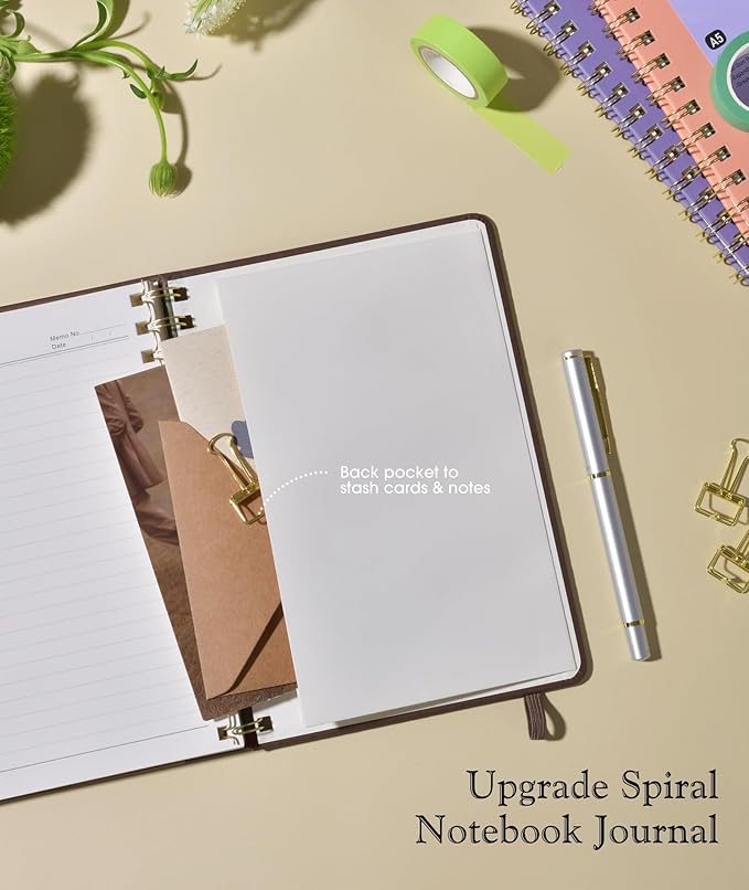- 【Inner Pocket & Elastic Closure】 Our work journal notebook back cover includes an expandable inner storage pocket to keep track of appointment cards, notes, receipts, and more, which ensure miscellaneous items secure. Come with an elastic closure band, not allowing the notebook to open accidentally, protecting your privacy. Perfect for all your writing, note-taking, traveling, etc.