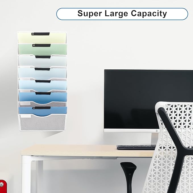 - 8 Pockets: The wall file organizer comes with mounting screws that can be easily mounted on the wall