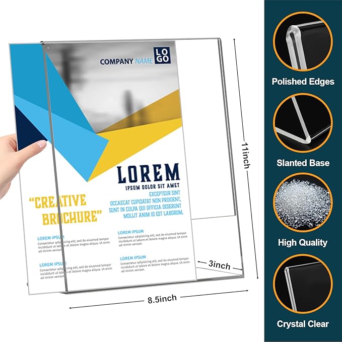 - 【Stable Slant Back Design】Our clear acrylic display stand is designed with slanted base. With this self-standing design, our Table Menu display stand will be stable enough which makes it an ideal choice for displaying images, brochures, and advertising pamphlets in any location.