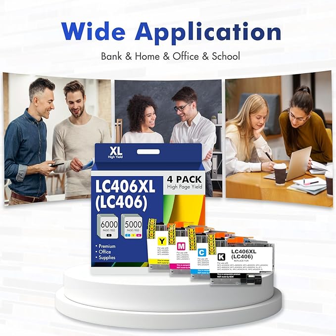 - Product Model: LC406XL LC406 Ink Cartridges for Brother Printer 4 Pack Black Cyan Magenta Yellow