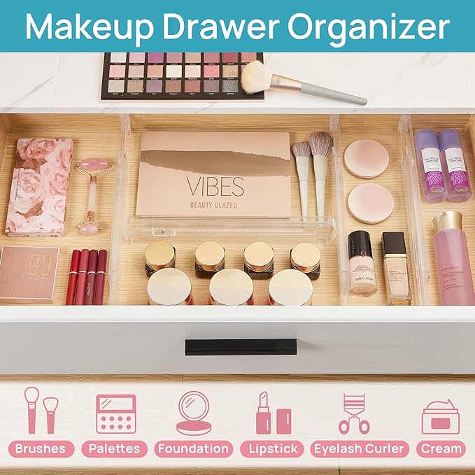 - 【Transparent & Sturdy Material】Made of durable shatter-resistant plastic; Moreover, the silicone strips on both sides as a buffer to effectively protect the drawers from scratching and marring. The sturdy and durable material will last long, providing convenience and comfort to you. They will play a greater role of organization and storage.