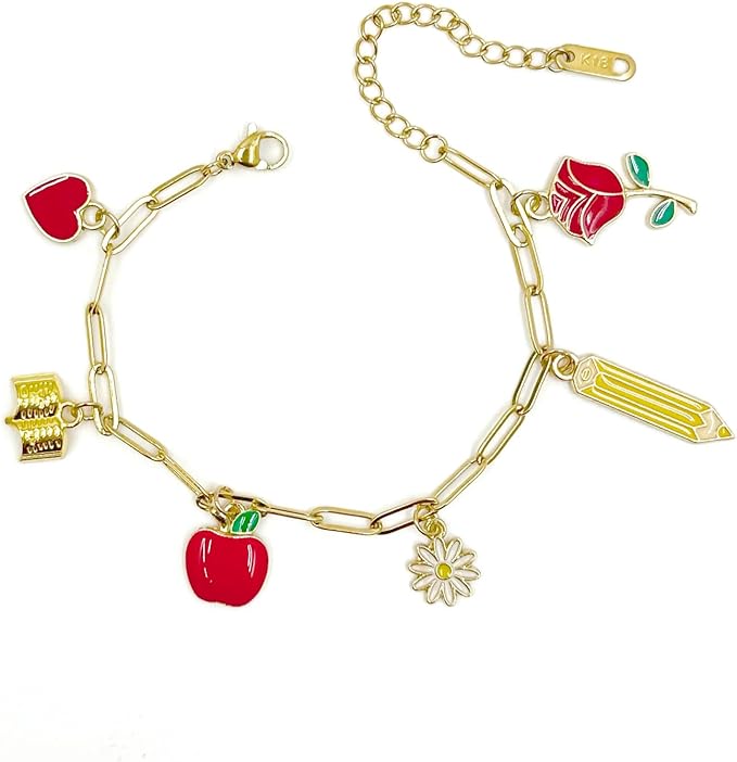 - 🍎 Adorable Teacher Charm Bracelet: This bracelet for teacher features charming educational-themed charm, including apples, pencils, books, and more. A meaningful thank you gift that lets your teacher know how much they’re appreciated.