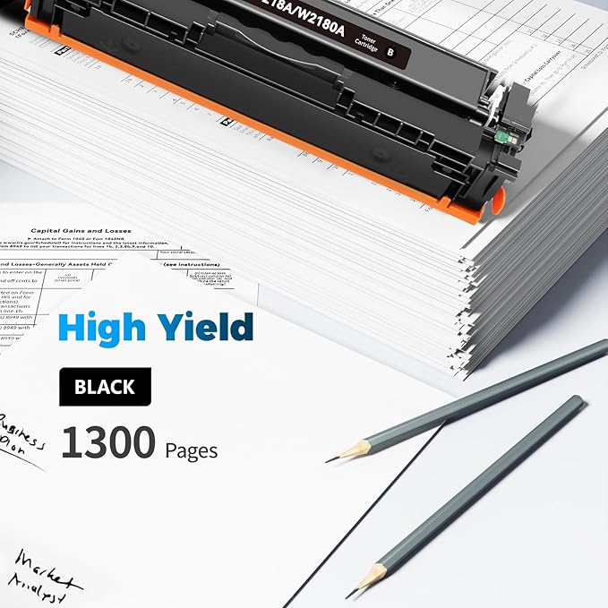 - High Page Yield: Up to 1,300 Pages for W2180A 218A Black toner cartridge at 5% coverage on letter/a4
