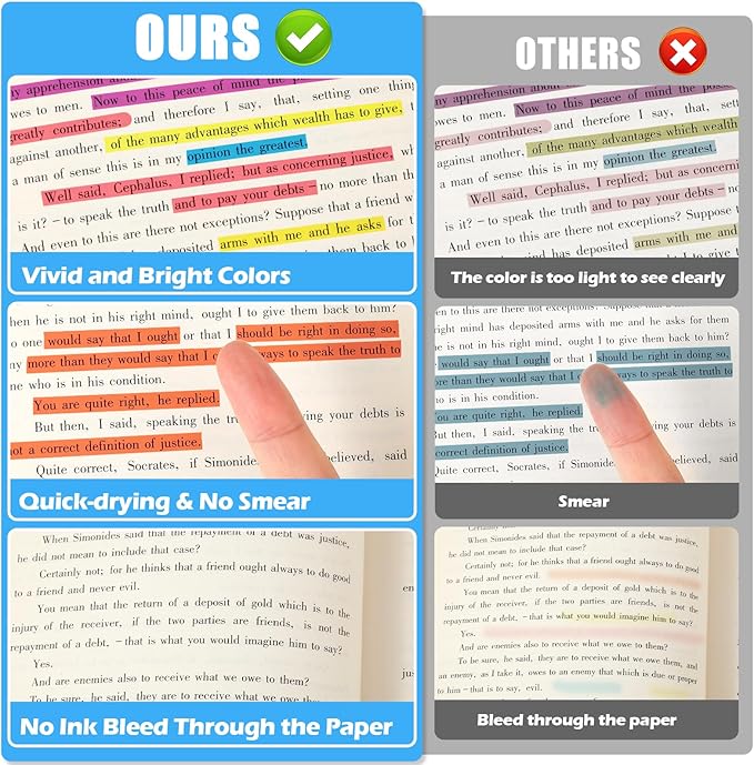 - Non-bleed & Long-Lasting: Features quick-dry ink that makes highlighted marks visible and prevents smudging on hands or pages. Premium refills ensure smooth, vibrant coloring. Our highlighters bulk works on various papers like notes, handouts, sticky notes, planners, and newspapers. Simply replace the cap after use for lasting durability.
