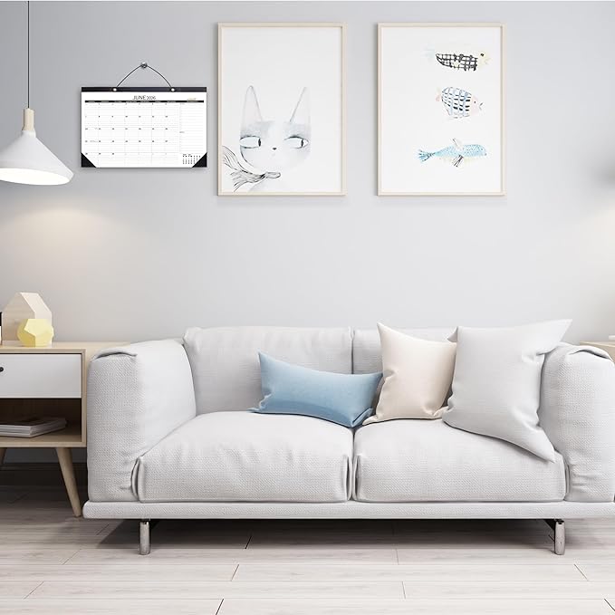 - Sleek, Functional Design with Versatile Hanging Options: Our office calendars seamlessly blend with any workspace, offering a sleek and modern aesthetic that adds elegance to your office decor while keeping you organized. Featuring protective black corner guards, our calendar provides both versatility and durability, allowing you to choose how you want to display it, be it on the wall or your desk.