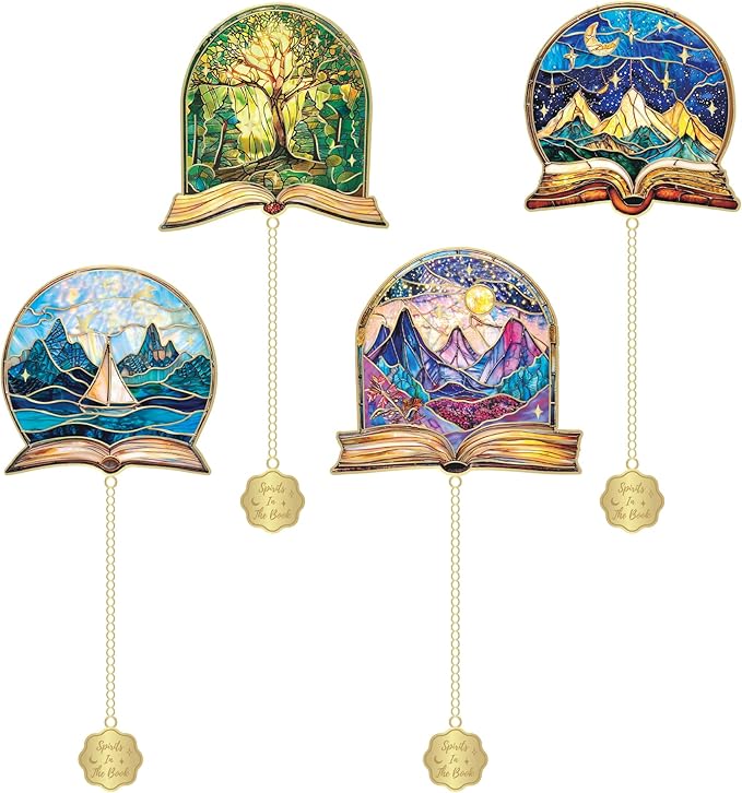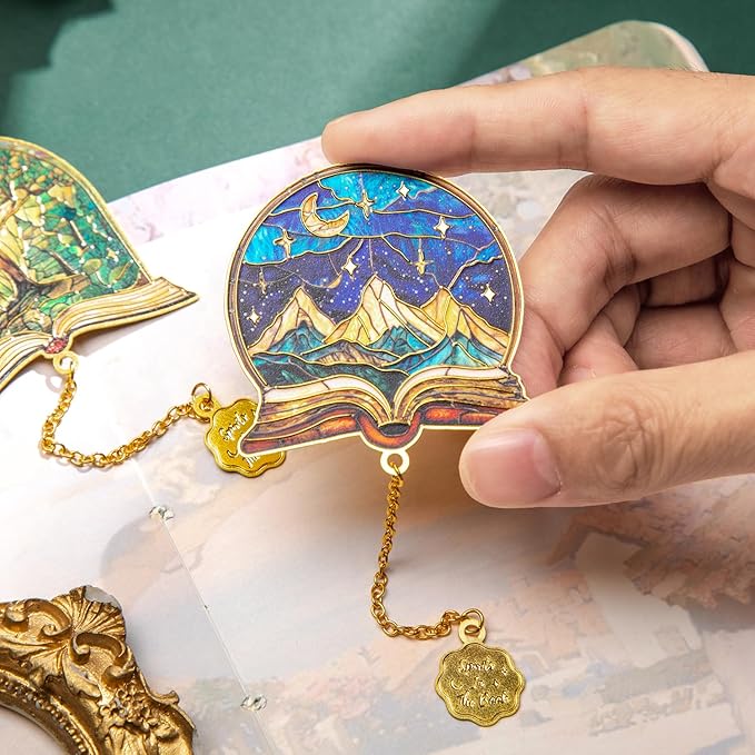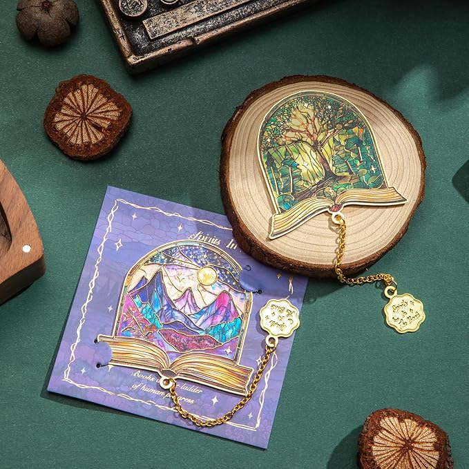 - Elegant Half-Circle Design with Intricate Chains Features enchanting themes of Books, Distant Mountains, Soaring Birds, Deep Forests, and Serene Lakes, adding a touch of nature to your reading experience.