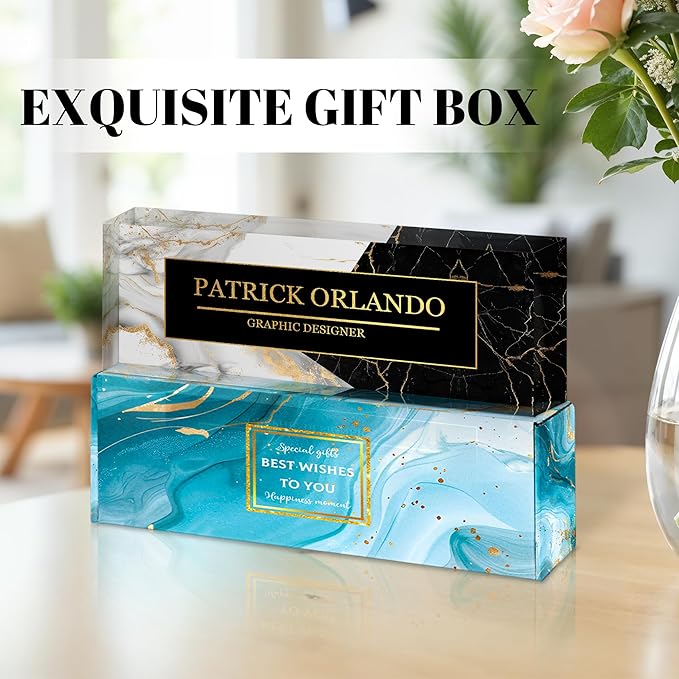 - Perfect Office Gifts: Our custom name plates come elegantly packaged in exquisite gift boxes, making them the perfect choice for a wide range of occasions. They're great as Christmas, office , employee appreciation, teacher, coworker birthday, boss thank you gifts. Whether you're looking for a present for various social workers, you're sure to find a style that you love. These personalized name plates will surely surprise and delight the recipients.