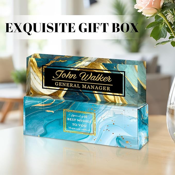 - Perfect Office Gifts: Our custom name plates come elegantly packaged in exquisite gift boxes, making them the perfect choice for a wide range of occasions. They're great as Christmas, office , employee appreciation, teacher, coworker birthday, boss thank you gifts. Whether you're looking for a present for various social workers, you're sure to find a style that you love. These personalized name plates will surely surprise and delight the recipients.