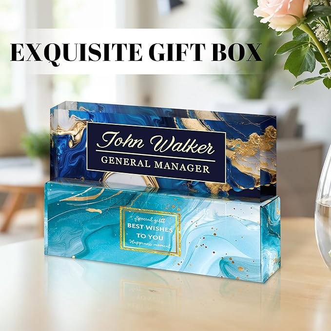 - Perfect Office Gifts: Our custom name plates come elegantly packaged in exquisite gift boxes, making them the perfect choice for a wide range of occasions. They're great as Christmas, office , employee appreciation, teacher, coworker birthday, boss thank you gifts. Whether you're looking for a present for various social workers, you're sure to find a style that you love. These personalized name plates will surely surprise and delight the recipients.