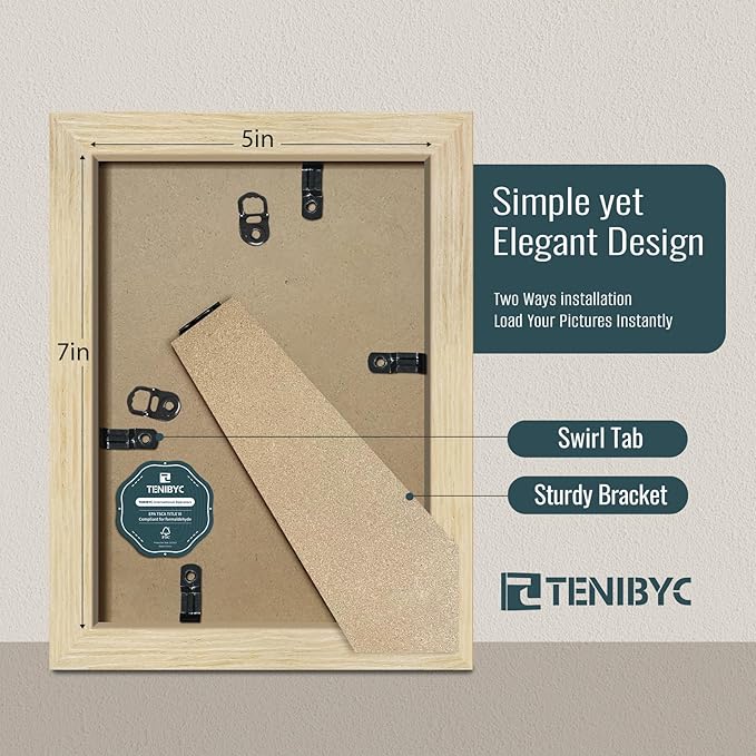 - Gallery - Grade Oak Wood Frame: Bask in the natural allure of TENIBYC's oak 5x7 frame, where the subtleties of the wood grain come to life in fine detail. Modeled after the captivating beauty of a natural forest, transform any piece into a professional showcase, effortlessly