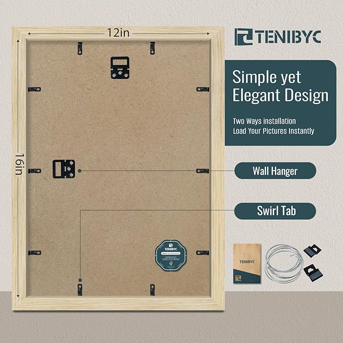 - Gallery - Grade Oak Wood Frame: Bask in the natural allure of TENIBYC's oak 12x16 frame, where the subtleties of the wood grain come to life in fine detail. Modeled after the captivating beauty of a natural forest, transform any piece into a professional showcase, effortlessly