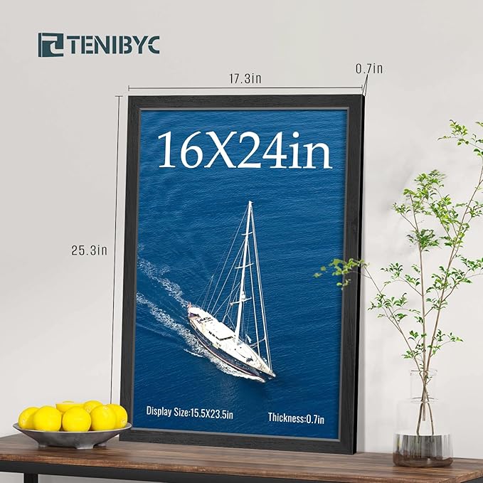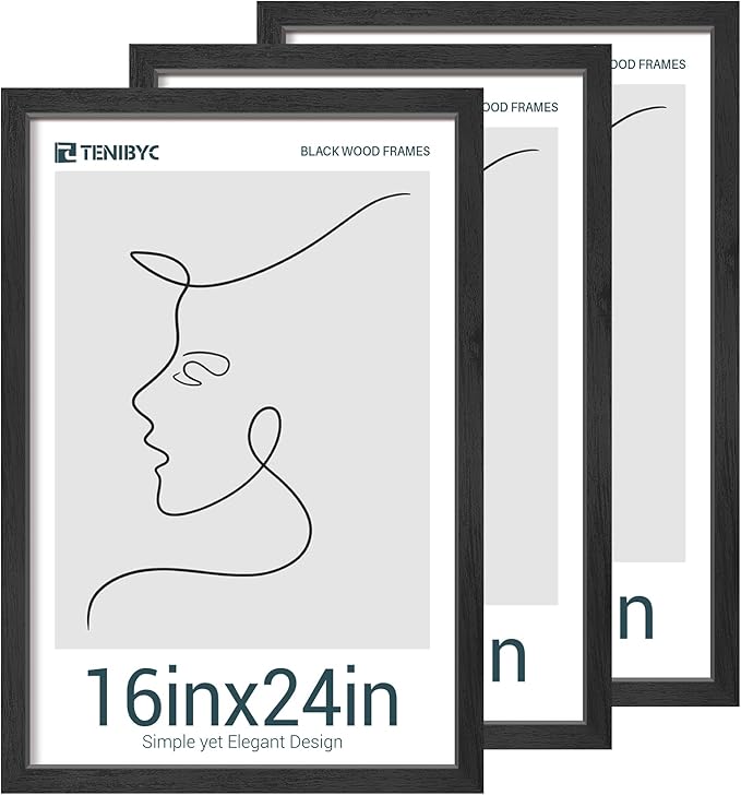 - Gallery - Grade Exclusive Wood Frame: Bask in the allure of TENIBYC's black 16x24 poster frame, where the subtleties of the wood grain come to life in fine detail. Let your art speak volumes, framed in unparalleled sophistication