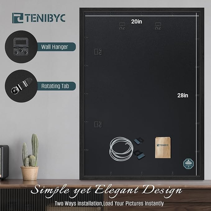 - Gallery - Grade Exclusive Wood Frame: Bask in the allure of TENIBYC's black 20x28 frame, where the subtleties of the wood grain come to life in fine detail. Let your art speak volumes, framed in unparalleled sophistication