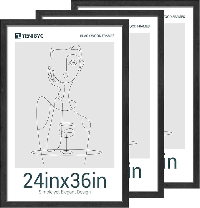 - Gallery - Grade Exclusive Wood Frame: Bask in the allure of TENIBYC's black 24x36 poster frame, where the subtleties of the wood grain come to life in fine detail. Let your art speak volumes, framed in unparalleled sophistication