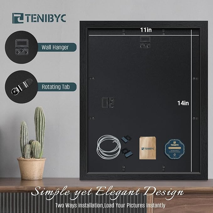 - Gallery - Grade Exclusive Wood Frame: Bask in the allure of TENIBYC's black 11x14 frame, where the subtleties of the wood grain come to life in fine detail. Let your art speak volumes, framed in unparalleled sophistication