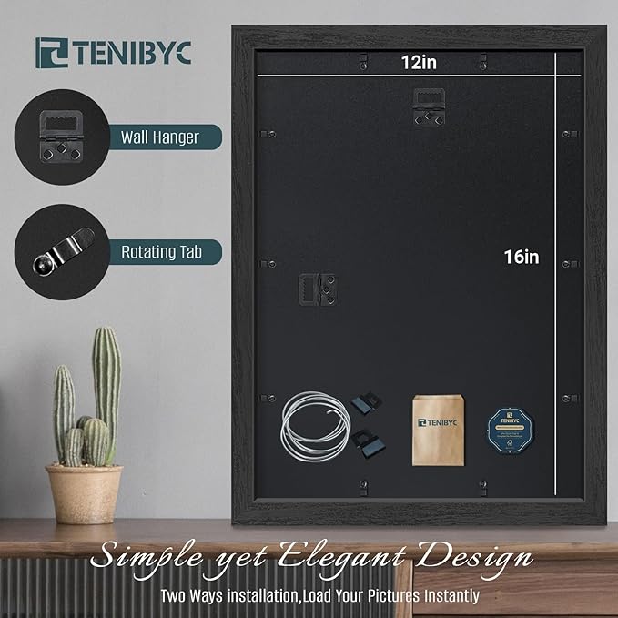 - Gallery - Grade Exclusive Wood Frame: Bask in the allure of TENIBYC's black 12x16 frame, where the subtleties of the wood grain come to life in fine detail. Let your art speak volumes, framed in unparalleled sophistication