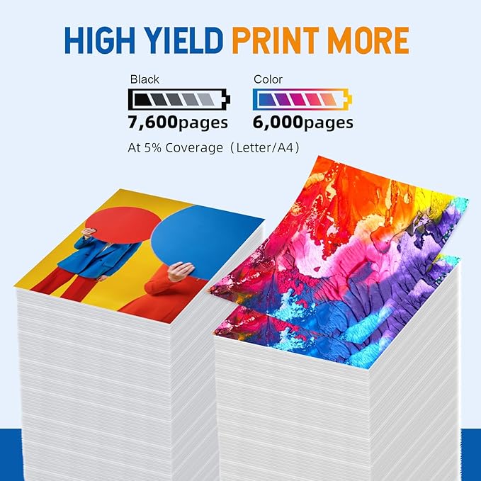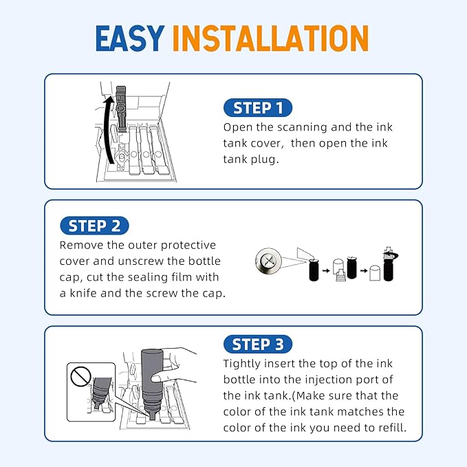 - 【High Page Yield】2 bottles of 140ml black ink can print up to 17000 pages, each color bottle can print up to 6000 pages in 70ml (5% coverage)