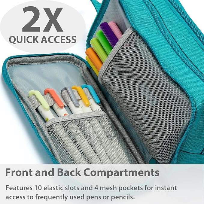 Pencil Case Pouch Box Bag School Supplies Girls Boys Kids, Cute Preppy Stuff Big Capacity Aesthetic Pen Organizer, Back to College Stationary, Teal, Extra Large Style, 2300ml