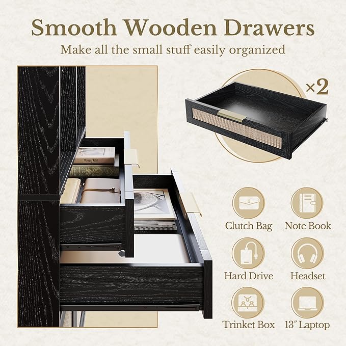 - Distinctive style furniture:Blending natural texture with modern design, the rattan drawer fronts bring a warm, organic charm to your space. The woven detail adds visual softness and a handcrafted touch, making it perfect for boho, coastal, or Scandinavian interiors.