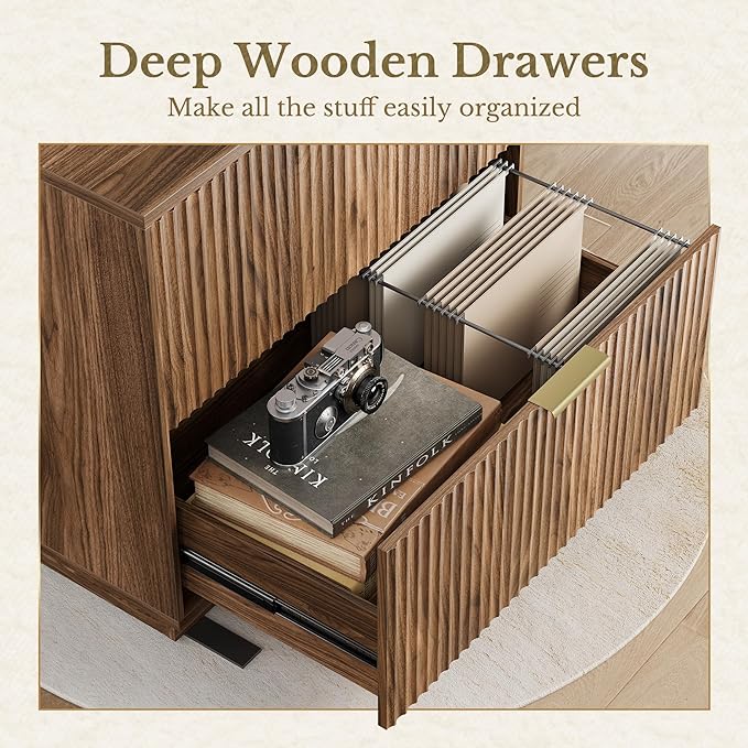 2 Drawer Fluted File Cabinet, 32'' Lateral File Cabinet for Legal/Letter/A4/F4 Size Hanging Files, Wood File Storage for Home Office, Black Walnut