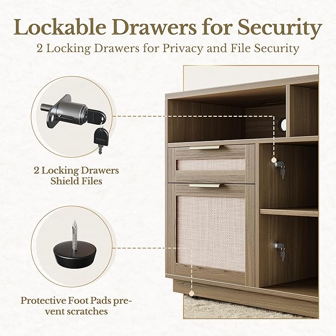 - Ample Storage Space: Our file cabinet features 4 drawers with different size, Two bottom file drawers accommodates legal/letter/A4 Sized documents, Left Drawers with locks secure important documents and protect the privacy of your business. Two smaller drawers for office essentials, open shelves are perfect to store books, or display decorative items, the spacious countertop design can support printers, scanners and other equipment, keep your workspace organized.