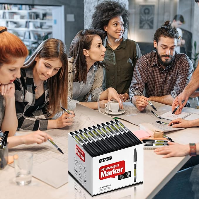 - 【Multi-functional Marker】Black permanent markers can be used not only on paper, but also on plastic, cardboard, metal, glass, ceramics, wood, fabric. The black permanent marker is widely used in office marking, factory storage labeling, educational drawing creation, daily use at home, retail merchandise marking, and food service/cold chain low temperature resistant marking and other scenarios, to meet the needs of the whole industry multi-material marking.
