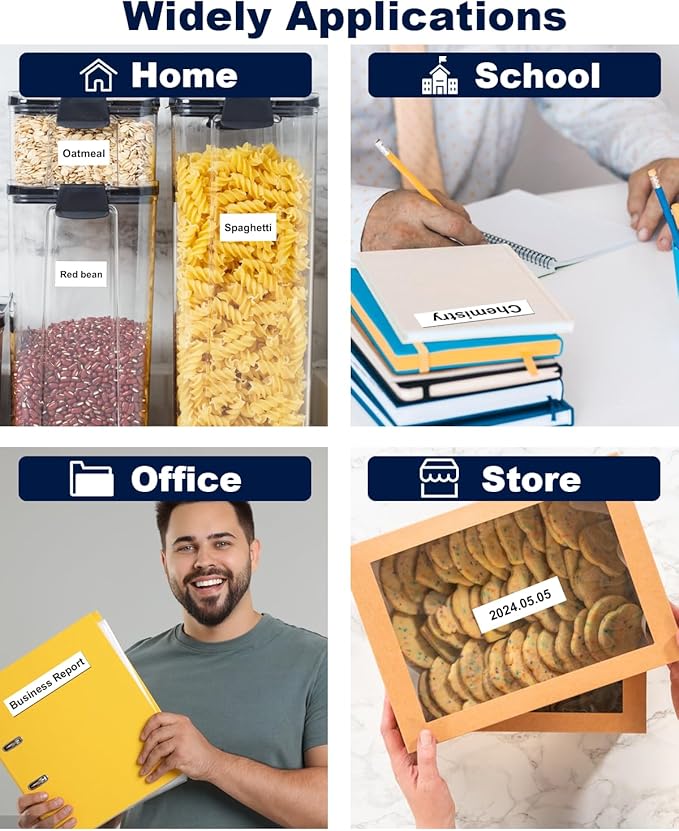 - Widely Applications: These 0.47” Laminated label tapes are great work for indoors and outdoors labeling applications, such as in Home, Office, Government, School, Hotel, Hospital, Restaurant, Factory, Bank, Laboratory, Warehouse, Farm, Repair Shop, Stores, Supermarkets and others more. Help you quickly identify the items.