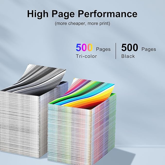 - [Page Yield] : Up to 500 pages per black ink cartridge,500 pages per tri-color ink cartridge (at 5% coverage A4)