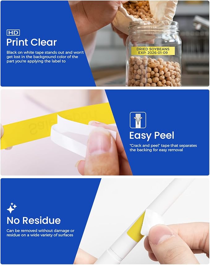 - Whether youโre organizing files, cables, or storage bins, this 18 mm 0.7 laminated black on yellow tape is a good choice for clear, durable, and reliable labeling