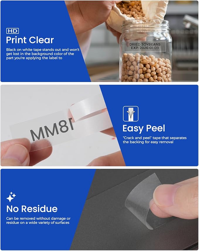 - Replace for tze tape 18mm black on clear are designed for quick removal, leaving no sticky mess behind. It can work well for reusing items without damage.