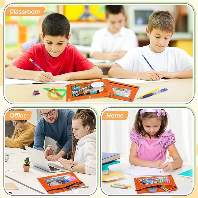 - Thoughtful Design- Clear view window design, make it easy to see what you need at a glance, take out the things you need conveniently. Each clear pencil pouch bag has big capacity for storage.
