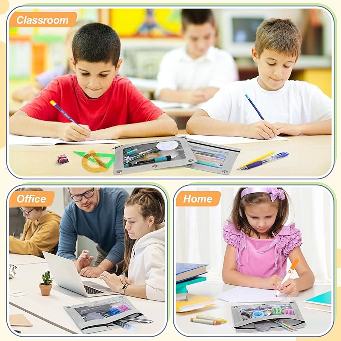 - Thoughtful Design- Clear view window design, make it easy to see what you need at a glance, take out the things you need conveniently. Each clear pencil pouch bag has big capacity for storage.