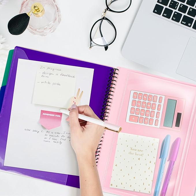 - 【Wide Range of Use】 For classrooms, offices, and home workstations, this spiral-bound pocket organizer centralizes handouts, worksheets, study guides, project plans, client files, and receipts. It lays flat 180° for easy writing and viewing, and color-coded tabs speed retrieval—helping you save time and stay organized every day.