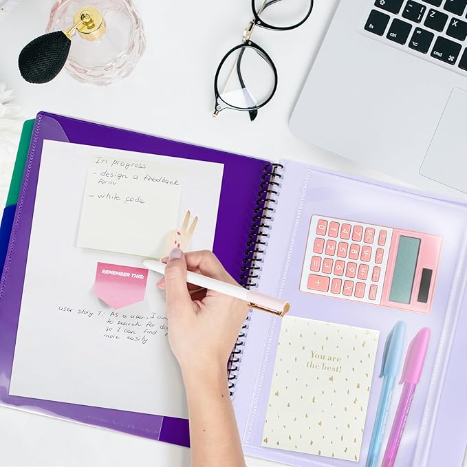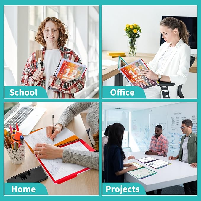 - 【Wide Range of Use】 For classrooms, offices, and home workstations, this spiral-bound pocket organizer centralizes handouts, worksheets, study guides, project plans, client files, and receipts. It lays flat 180° for easy writing and viewing, and color-coded tabs speed retrieval—helping you save time and stay organized every day.