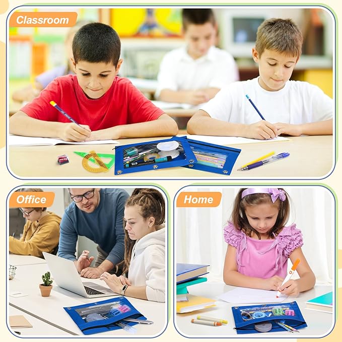 - Thoughtful Design- Clear view window design, make it easy to see what you need at a glance, take out the things you need conveniently. Each clear pencil pouch bag has big capacity for storage.