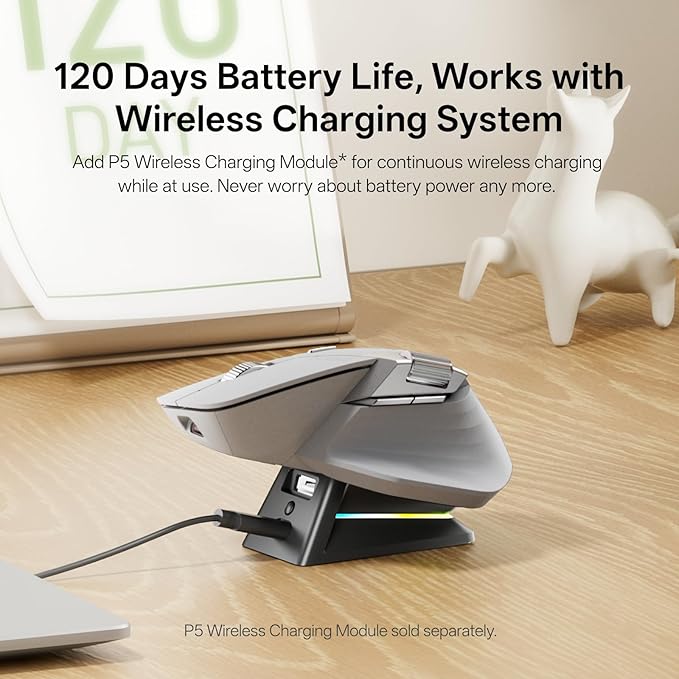 - 【Wireless Charging Enabled】Works with most Qi wireless charging mouse pads, enjoy an effortless power boost while at use, and embrace the convenience of cord-free charging. [Need to purchase P3 Wireless Charging Module separately]
