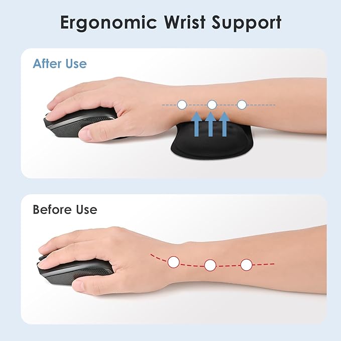 - 【Wrist Pain Relief】If your wrist suffers from the pain caused by repetitive rubbing against hard desk, this ergonomic mouse wrist pad can provide comfortable and firm support. Effectively relieves wrist discomfort and improves carpal tunnel syndrome(CTS). A great companion for computer users!