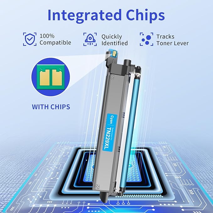 - Smart CHIP:Our TN229XL TN229 toner cartridges equipped with the latest upgrade smart chip ensures the high compatibility and makes it easier to use without replacing the chip from the OEM TN229XL TN-229XL TN229 TN-229XLBK/C/M/Y.This helps you be more productive