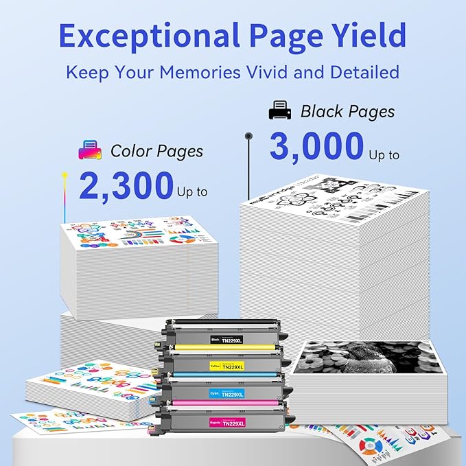 - Superior Quality:Our TN-229 XL TN229 TN229XL toner cartridges could be recognized instantly and deliver clear and crisp text, ensuring professional documents, graphics and photos