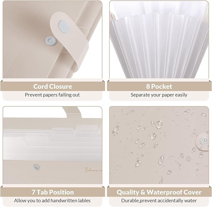 SKYDUE Expanding File Organizer with 8 Pockets, Accordion File Folders with Labels, Portable Document Paper Bill Receipt Organizer, Home College School Office Supplies, Letter Size,MilkTeaBrow