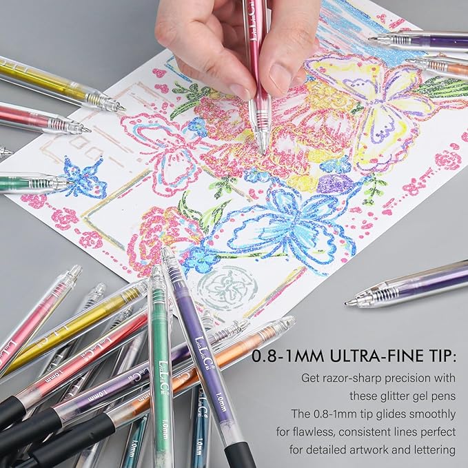 - 【Smooth Writing】:Superior glitter ink and soft rubber grip make the pens writing smoothly and using durable! The free-flowing ink ensures smooth writing, preventing skips, smudges, or bleed-through, so you can enjoy a seamless writing experience