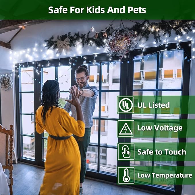 - Safe & energy efficient: Our UL-listed energy efficient Christmas lights use a 29V low-voltage plug, staying safe for kids and pets even after hours. LEDs consume 90% less power than incandescents and last up to 50,000 hours. Durable insulated wiring and sealed bulbs withstand wear and weather, while staying cool to the touch— just lasting festive glow. Great for both indoor and outdoor use, from Christmas tree lights to patio string lights