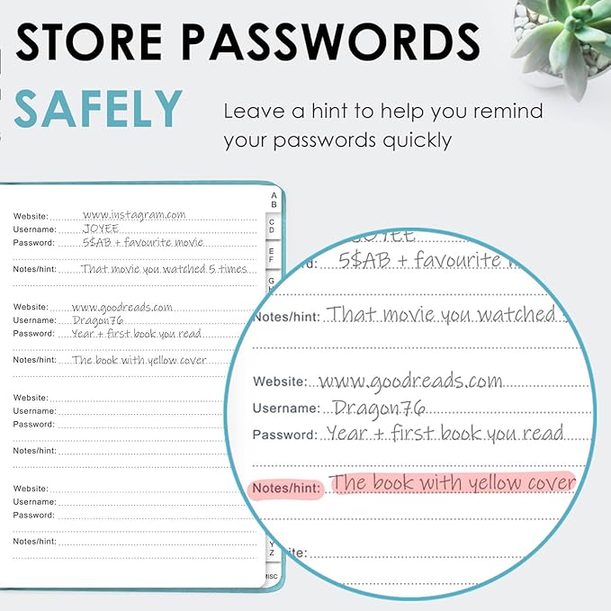 - ALPHABETICAL A-Z TABS FOR QUICK ACCESS: Alphabetical tabs design allows you to store your passwords alphabetically so you can find what you want faster, no more annoying searches!