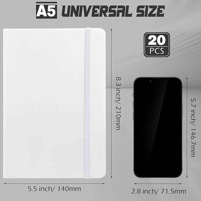 Honoson 20 Pack Lined Journal Notebooks A5 Hardcover Executive Notebook 5.5" x 8.3" PU Leather Wide Ruled Journals Bulk with Elastic Band for Home Business Office School Supplies(White)