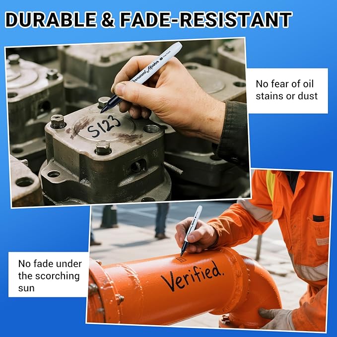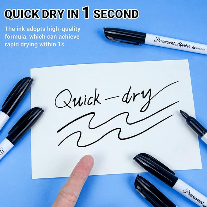 - Engineered with advanced quick-drying ink that sets in 1 second – no smudges on hands or documents! Perfect for teachers and engineers in fast-paced environments like warehouses or teaching classrooms. Writes smoothly on paper, plastic bins, metal parts, glass surfaces, and even stone crafts. Leaves a permanent mark that won't wear off.