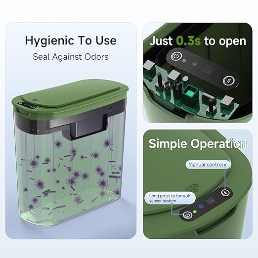 - 【Touchless Trash Can】Adopts advanced infrared technology. The lid opens when your hand or any object is detected in the sensing area, eliminating the need for direct contact, particularly beneficial for individuals with mobility challenges. Requires 2 AA batteries (not included)