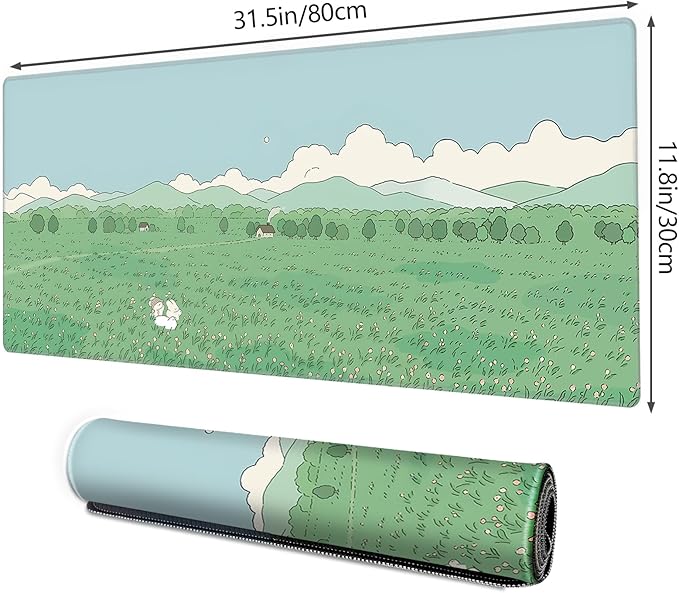 Galdas Gaming Mouse Pad XXL XL Large Long Extended Big Mousepad Non-Slip Rubber Keyboard Mouse Pad with Stitched Edges for Laptop Home Office (31.5x11.8x0.08 Inch) … (Clouds and Green)