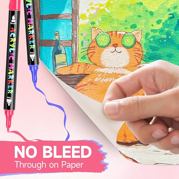 - Non-Toxic: Each acrylic marker conforms to ASTM D-4236 standards. The markers are made with water-based ink, non-toxic, which allows for smooth and continuous painting, allowing for easy creation. The resulting images are brightly colored, resistant to fading, waterproof, and sun resistant, making them suitable for long-term preservation. Note: Please tighten the cap and put pens horizontally if you don't use them.