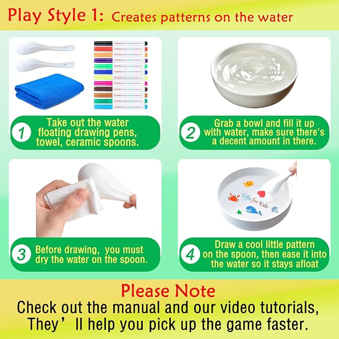- 🎈Notice: Be sure to watch our video before using it. It can help you quickly understand the usage of the float ink water paint pen for children, how to make tattoos pictures for kiddie. If you experience any issues with your product, please contact us.