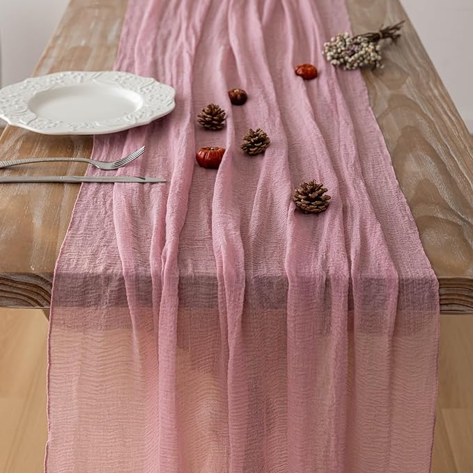 3pcs Cheesecloth Table Runner Dusty Rose Gauze 120 Inch 10 FT Rustic Boho Cheese Cloth Runner for Wedding Baby Shower Bridal Shower Party Long Sheer Centerpiece Fall Home Decoration